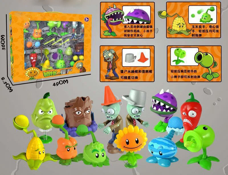 For Sale - 12pcs/set Vinyl Pea Gun Can Be Fired PVZ Plants Vs Zombies Toys Hobbies Action Figures Toys for Children Christmas Special Offers